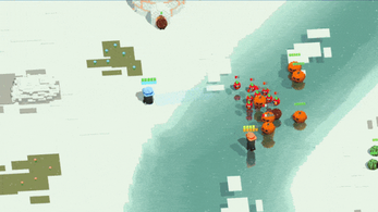 Breeze & Freeze is a 3D top-down arena shooter using voxel graphics. It is intended to be played by exactly two players with controllers. The goal of the game is to survive all enemy waves and defeat the final boss, the Pumpking.